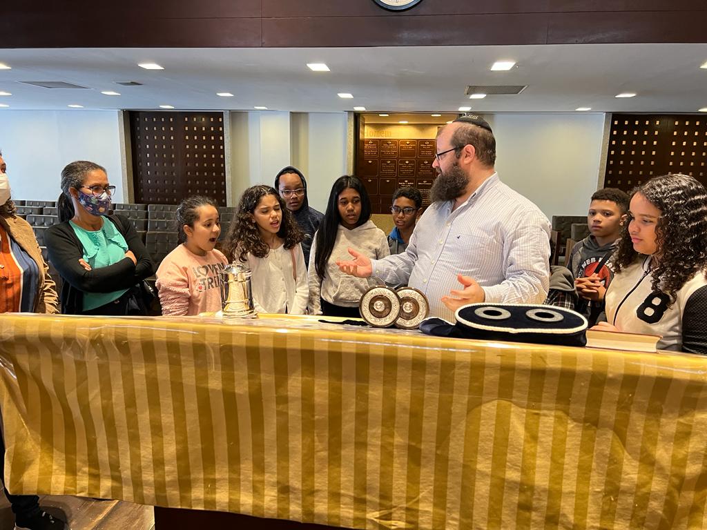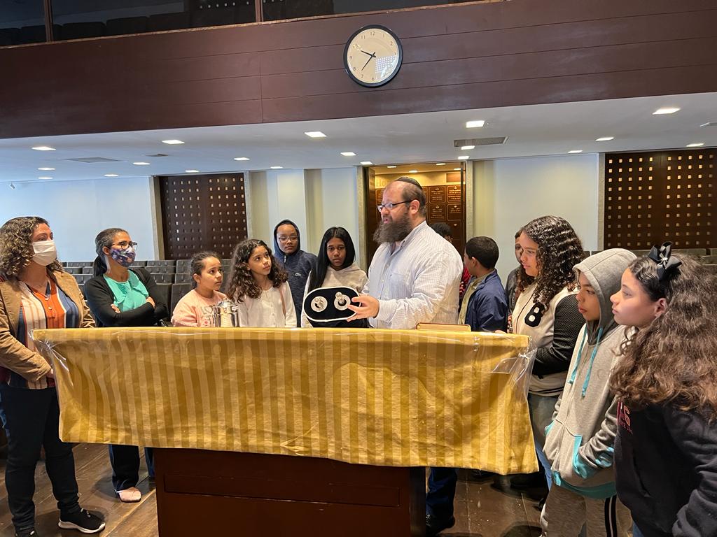 No dia 01/11, recebemos a segunda visita da escola Aparecida de Lourdes, zona sul de São Paulo, conduzindo-os a um breve tour pela sinagoga. Estamos ansiosos pela próxima turma!
