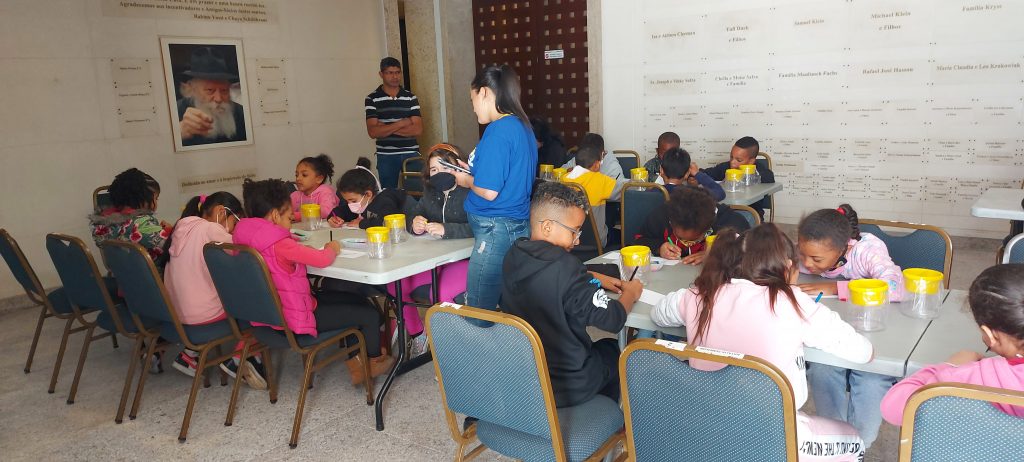 Hoje, 14/07, recebemos a visita do CCA Vale das Virtudes. Eles conheceram a Sinagoga, participara de uma oficina de artes, além de uma momento de leitura na biblioteca.
